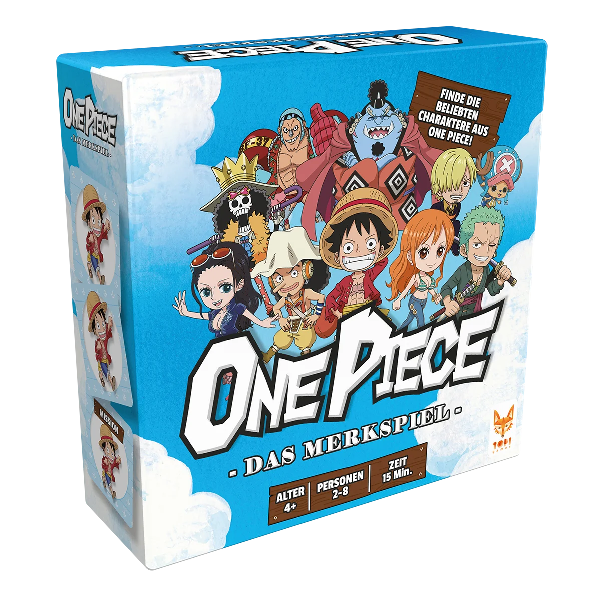 InOne Piece: Das Merkspielversucht ihr, zusammenpassende Paare der ikonischstenOne Piece-Charaktere zu finden, bevor es eure Mitspieler tun. Aber Achtung, versucht es den anderen nicht zu einfach zu machen, indem ihr ihnen versehentlich Vorlagen liefert. 50 Karten mit den beliebten Charakteren ausOne Piecestellen euch dabei auf die Probe. Mit 2 unterschiedlichen Schwierigkeitsstufen, die euch so richtig herausfordern.
