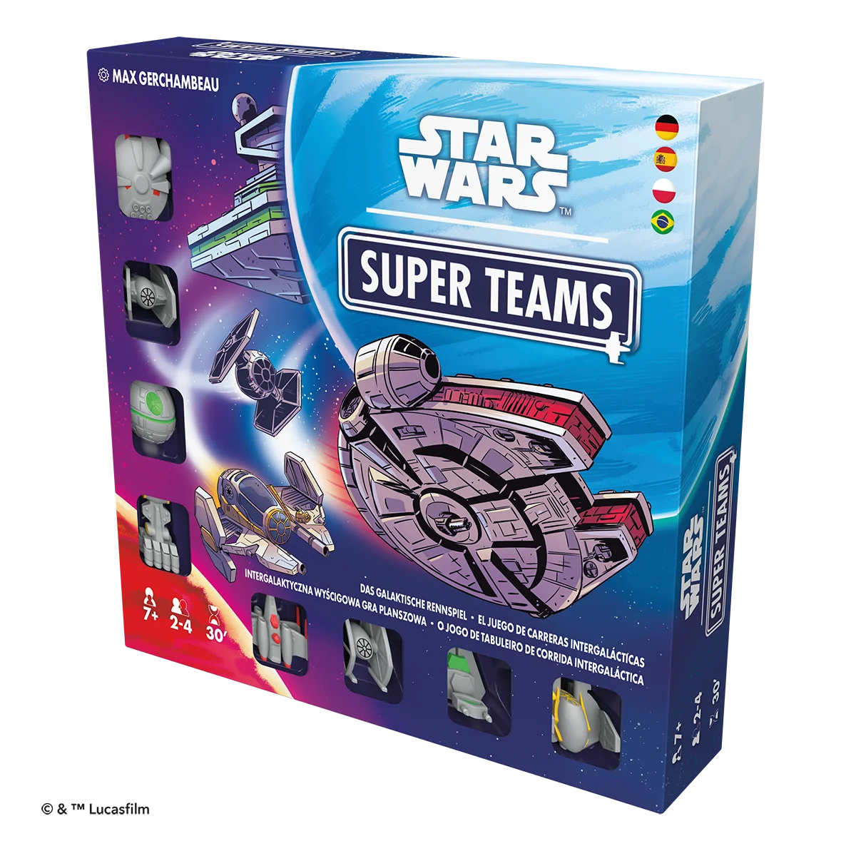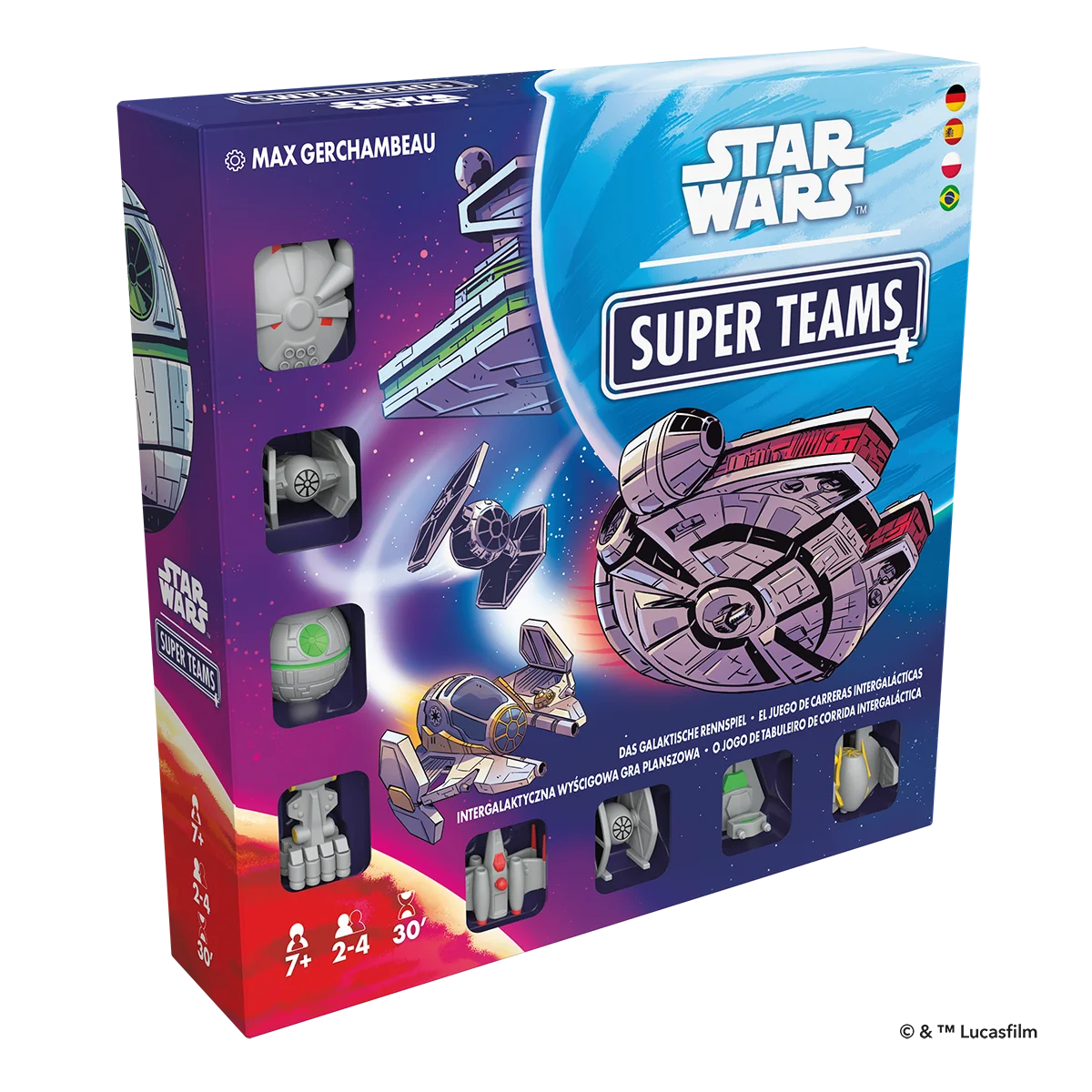 Star Wars™ Super Teams ist ein Rennspiel voller Spaß und Strategie für die ganze Familie. Ihr tretet mit euren Teams auf einer Strecke voller Hindernisse und Bonusfelder gegeneinander an. Durch strategisches Einsetzen eurer Bewegungskarten müsst ihr versuchen, eure Figuren als erstes in Ziel zu bringen und die gegnerischen Figuren zu verlangsamen, indem ihr sie auf Asteroiden- oder Schlundfelder setzt. Könnt ihr euer Team aus X-Flügler & Millennium Falke, Sternenzerstörer & Todesstern, TIE-Jäger & TIE-Turbojäger oder Jedi-Sternenjäger & Tantive IV zum Sieg führen?